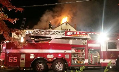 Chief 44 AOS with fire showing from a 2 story apartment building. L65's crew opened up the roof as Interior crews made a quick knock on the fire. The cause of the fire is under investigation by Bensalem Township Fire Rescue. |